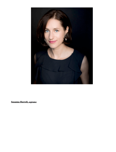 Susanna Hurrell, Sopran, wurde von der Kritik für ihre Auftritte am Royal Opera House, Covent Garden gelobt und sang für die English National Opera, die English Touring Opera, die Opéra de Lorraine, das Festival d'Aix en Provence, die Opéra de Limoges, das Landestheater Detmold, das Mariinsky Theater, die Norwegische Nationaloper, das Theater an der Wien und das Teatro del Liceu. Zu ihren Rollen gehören Lauretta, Melisande, Micaëla, Gretel, Susanna, Despina, Rosalinde, Opernrollen von Händel, Cavalli, Rossini und in Brittens The Turn of The Screw, Weills Street Scene, G. Benjamins Lessons in Love and Violence und P. Venables' 4.48 Psychosis. Sie hat mit dem BBC Symphony Orch, dem Royal Liverpool Philharmonic Orch., dem London Philharmonic Orch., dem Scottish Chamber Orch., dem English Chamber Orch. und dem Bournemouth Symphony Orch. gesungen. Sie war Finalistin beim Kathleen Ferrier Wettbewerb und Halbfinalistin beim Königin-Elisabeth-Wettbewerb in Brüssel. Sie studierte am Royal College of Music und am National Opera Studio, Großbritannien.